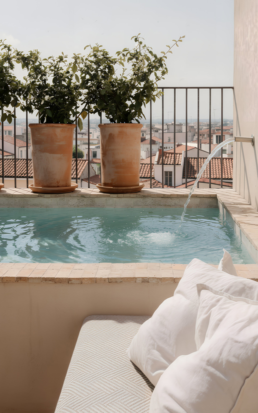While formal records of the home’s original construction are limited, the building is understood to date to the early 19th century, around 1820. What is unmistakable is its long-standing integration into the fabric of the neighbourhood. The house does not sit beside the centuries-old landmark so much as it lives with it. From the terrace pool, the front façade windows, and the rooftop, views are consistently framed by the original stone walls, placing the home in constant dialogue with one of the city’s oldest structures.
